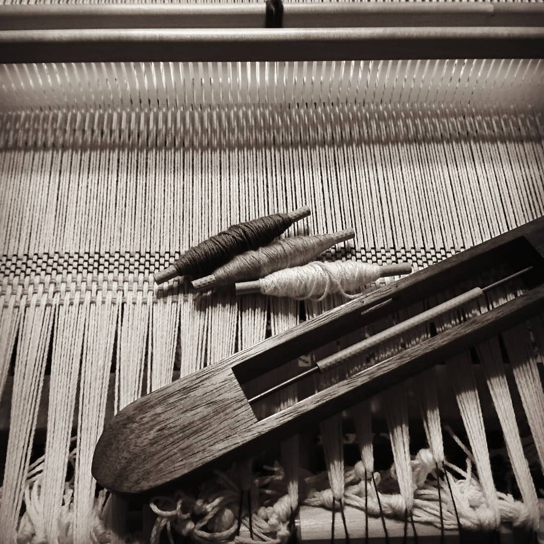 So, my aim is still to weave some projects entirely from handspun… but I got impatient with finding handspun in enough quantity that was also colour coordinating, and decided to start with an easier option – handspun warp, with a commercial yarn in the weft. This meant I could use a single-coloured weft yarn thatโฆ